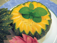 《大廚上菜》乳酪焗烤南瓜盅 王秀安 |2007.11.18 語音朗讀 1434觀看次 字級 大 中 小 屬瓜藤類的南瓜含有豐富纖維素及維他命A、C,胡蘿蔔素是抗氧化物,能防止老化,可預防心臟病及癌症,南瓜中之微量元素鈷能增加體內胰島素分泌,對降低血糖有不錯的功效,對糖尿病患者而言是一項很好的食物,南瓜皮營養又有口感,可一起食用。 一般餐廳的南瓜盅是加入竹筍、金針、香菇、素火腿等材料,盅內不必另加水,蒸後的南瓜原汁才會更香甜。而「蘭欣庭」的「乳酪焗烤南瓜盅」南瓜大小均勻,露出誘人的色澤,材料有紅棗、九層塔、檸檬汁及酸奶,淋上乳酪後甜酸調和得剛剛好,入口留香、餘味無窮。 前一篇文章 《有機達人》以菜會友 下一篇文章 《DIY教室》清蒸杏鮑菇 熱門新聞 01記得與忘記2026.01.0802悍將、雄鷹補戰力 拚闖季後賽2026.01.0903南投山區 梅花盛開2026.01.0704【愛的樣貌】平凡裡沉澱出深情2026.01.0605台水潮州營運所落成 佛光山灑淨2026.01.0906百馬剪紙 法水寺非遺藝術展2026.01.0607全球最長壽貓 30歲等同120歲人瑞2026.01.0808星雲大師全集【傳記】百年佛緣─生活篇 僧情不比俗情濃—我對感情的看法 4 - 12026.01.0609星雲大師全集【傳記】百年佛緣─生活篇 僧情不比俗情濃—我對感情的看法 4-22026.01.0710三寶寺護法委員餐會 凝聚長期護持力量2026.01.07 訂閱電子報 台北市 天氣預報 台灣一週天氣預報 相關報導 【蔬活日常】涼拌菜其實不簡單【時令滋味】冬收曳翠姿 賀節好食芥【樂活蔬食】一碗南瓜黑豆湯找回甘美滋味【賣菜郎說菜經】好霸道的皇帝豆【節氣養生】小寒 橄欖酸甜鹹 潤肺解毒【點心時間】童年的幸福小餅