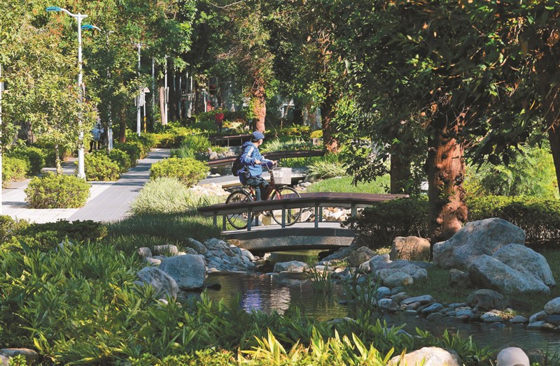 新生南路三段水圳意象重現,打造兼具人本、韌性的綠色廊道。圖/中央社