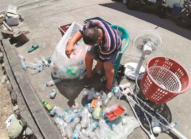 台東縣延平鄉胡姓男子今年加入環保局「資源回收關懷計畫」,圖為他整理回收物場景。