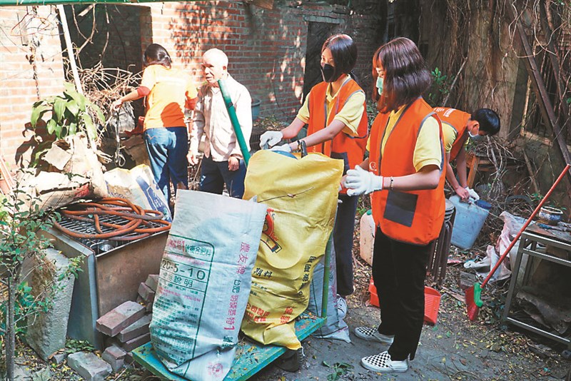 大葉大學學生前往獨居長輩家中,挽袖幫忙年終大掃除。圖/大葉大學提供