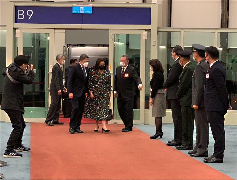 【本報台北訊】今年適逢台灣與宏都拉斯建交80週年,宏國總統耶南德茲今(12)日晚間抵台參訪,在桃園國際機場下機後,揮手向現場人員致意。