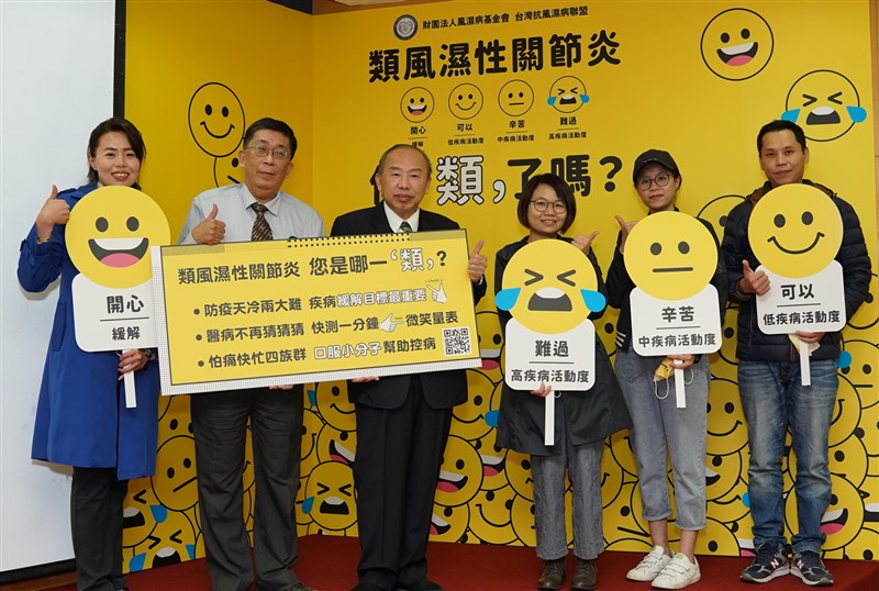 基金會聯盟董事長蔡世滋勉病友,秋冬是類風溼性關節炎好發季節,一般預測今年冬天會特別冷,加上新冠肺炎疫情伺機而動,病友更應重視治療達標;臨床觀察,逾九成病友不清楚個人治療目標,可能影響疾病控制與治療成效。對此,基金會聯盟推出「一分鐘微笑量表」(臉書https://is.gd/D6OgrB、雲端shorturl.at/cgA06),使用時下流行的emoji表情符號,幫助醫病溝通,並做出治療決策。