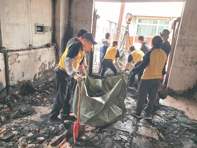 由於火災發生於三樓住家,為方便清運,楊政達除出動自家公司的大型吊卡車協助吊掛太空包外,他的多位員工得知消息後,也主動前往現場幫忙,展現人間溫情。