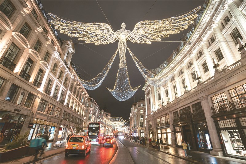 【本報綜合外電報導】西倫敦鬧區十二日晚間同時亮起超過百萬顆燈泡,市府說這是全球、也是倫敦最大規模的耶誕點燈。倫敦市長沙迪克汗說,倫敦向全世界張開雙臂,疫後復甦「就從今年耶誕節開始」。
