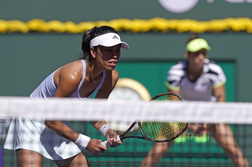 謝淑薇/梅騰絲在WTA年終賽女雙預賽吞首敗;圖為兩人在印地安泉網球賽出賽。圖/美聯社