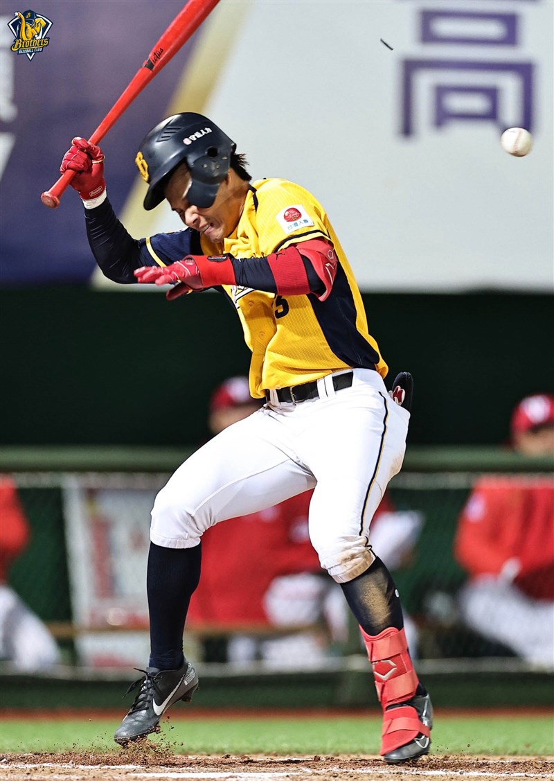 陳偉漢3上被柯西諾144公里直球直擊頭部。圖/中信兄弟提供
