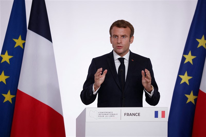 法國總統馬克宏將國旗上原先較亮的藍色,改為較深的「海軍藍」,象徵「法國大革命」。圖/法新社