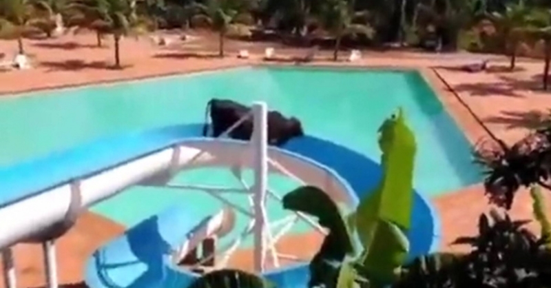 根據《太陽報》報導指出,這頭牛是從巴西里約熱內盧西邊500英里的牧場逃跑,結果闖入新格拉納達的水上樂園。在被人發現到時,這頭牛已經卡在滑水道上動彈不得。後來一群現場的工作人員用繩子綁住牠,前拉後推的將牠推離滑水道,跌入水池中,最後才將牠拉出水面。
