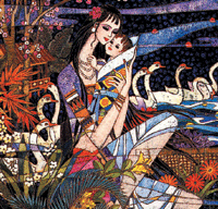 張筱君一九九八年病逝於美國;作品融合東西方藝術特點,人物構圖婀娜多姿、柔中帶細。張筱君畫作在美國、東南亞廣被收藏。丁紹光也是雲南重彩畫派開基祖,此次展出多幅新完成的版畫。