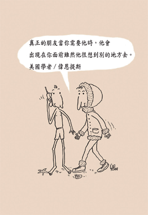 《古今名人語錄》 尤俠/圖 |2007.11.22 語音朗讀 299觀看次 字級 大 中 小 真正的朋友當你需要他時,他會出現在你面前,雖然他很想到別的地方去。美國學者/偉恩提斯 前一篇文章 《無盡樂》 卓爾丹‧柯達伊 下一篇文章 《世界經典名畫》霍普的精神原鄉 日落的鐵道旁 熱門新聞 01【遊藝筆記】中秋隨談 千里共嬋娟2025.09.3002種樹護地球 維也納佛光人路跑2025.09.3003宏法社贈星雲大師全集 頭份國中弘傳三好2025.09.3004塭仔圳重劃區 開發進度受矚目2025.09.3005佛大義煮團 熱食暖心馳援光復2025.10.0106【世界行旅】煙火˙人間 2025.10.0107壓力會破壞大腦防線2025.10.0108大腦基本運算單元2025.10.0109台灣好行 套票送好禮2025.10.0110【世界行旅】種夢西伯利亞三暖湖 2025.09.30 訂閱電子報 台北市 天氣預報 台灣一週天氣預報 相關報導 【大江南北】蘇州蠡墅老街 【匠心傳承──內蒙古非物質文化遺產特展】內蒙古非遺【課本沒有的歷史】 紫石英號事件 國共內戰有英國海軍鬧場?【歲月風華】 從台北州廳到監察院【美哉斯土】 大港橋 鋪展港都風華【大千我見──蔡梅芳、王玲琳、楊新福、冼宜泉藝術創作聯展】 玄武之境