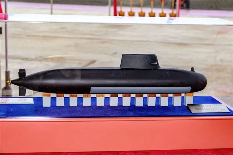 國造潛艦最大的特色是採X型尾翼,而不是使用一般潛艦傳統十字型尾翼。圖為國造潛艦模型。圖/國防部提供