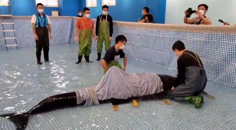 中華鯨豚協會專員郭祥廈說,偽虎鯨偏瘦,但沒有明顯外傷,體長320公分要十多人才抬得動,很多義工、海巡、地方人士幫忙。昨天做了超音波,有部分積水,獸醫師打抗生素,並插管補充水分,有插管補水,如果胃裡酸度夠會評估餵食。