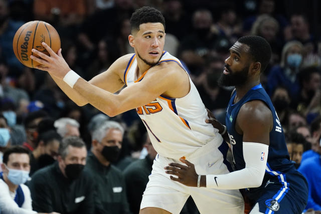布克(左)拿到全場最高24分,成功率太陽驚滔駭浪中拿到10連勝。圖/美聯社