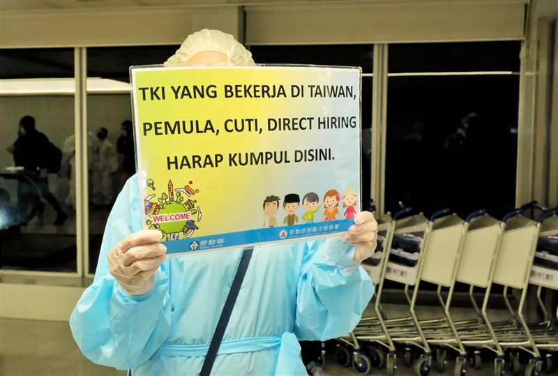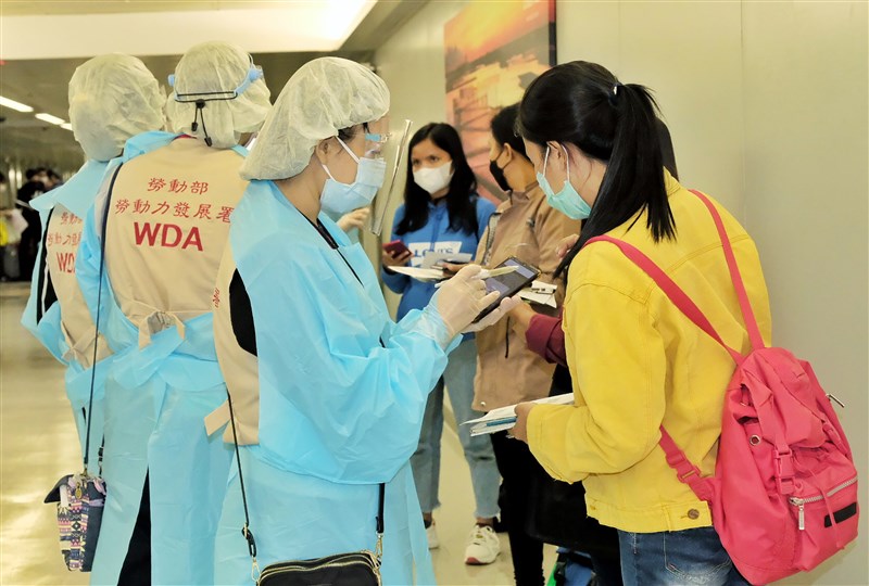 勞動部表示,配合指揮中心邊境管制措施,疫情期間移工入境均由勞動部移工機場服務站接機人員協助接機,接機人員於飛機抵台後,於入境長廊集合並確認移工身分,即請移工保持社交距離,向移工簡要說明入境通關程序、14日檢疫及7日自主健康管理應配合事項,以及發送印尼語「移工在台工作須知手冊」,掃描加入「LINE@移點通」及宣導1955移工諮詢申訴專線。