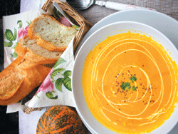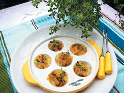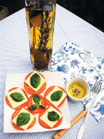 幸福的一天 就交給香草吧! |2007.11.25 語音朗讀 711觀看次 字級 大 中 小 番茄羅勒佐起司沙拉 好開胃奶油喜歡紅橙鮮艷的番茄色澤,彷彿嗅聞到金黃陽光氣息,切開蕃茄的剎那 ,一股果香悄悄地蔓延,在大自然洗禮下的果實,豐富柔軟,飽滿而多汁,而其所富含的茄紅素及維他命C,為身體注入更多的能量。羅勒是院子裡最為我青睞的香草植物,不管是西式青醬料理或中式的三杯料理 ,總扮演著舉足輕重的角色,為料理恰如其份的做出完美的演繹。做法:將番茄切片依序平鋪於盤上;起司也切片置於蕃茄片上,再將新鮮羅勒葉片洗淨,一片片置於最上方,最後再將香草油或橄欖油淋上。小分享:這道菜很適合在家中宴客時做為開胃前菜,接近荳蔻香氣的新鮮羅勒葉片,還具有開啟食慾的效果,不僅料理方法簡單,口感清新且不油膩,而在視覺上鮮艷的紅與綠,搭配起司溫暖的米黃色,一種屬於秋天的幸福感受,為餐宴揭開完美的序曲。焗烤磨菇 與百里香對話晨起在花園澆水時,與百里香的對話總會多一些,喜歡輕輕撫摸他細碎的葉片,爾後雙手便沾滿其略帶點檸檬的清新氣息。在中古世紀,百里香富有多種意涵及神話故事,而其中最令人動容的一則即是,傳說特洛伊戰爭時,女神維納斯從天而降,流下了傷心的淚水,淚水瞬間化為百里香的葉片。所以百里香的葉片細小成串,有如一顆顆珍珠般的淚水,葉片還有淡淡的檸檬香氣,不僅幫助消化,並有防腐及殺菌的功效,除了茶飲之外,與各式的食材結合,能展現特殊風味。記得有一回到餐廳用餐,上了一道焗烤磨菇,用圓型烤盤盛裝,烤盤只有六只小洞,於是每人只分食到到一顆磨菇,對嗜吃焗烤食物的孩子們而言,真是意猶未盡。回家後就決定給孩子們一份意外驚喜,吃到飽的焗烤磨菇,用新鮮的百里香葉片與磨菇結合,烘烤過後的磨菇與略帶檸檬氣息的百里香,產生美妙無比的風味。做法:將磨菇對半切開,洋蔥切成末,烤箱預熱至200度,拿一只平底鍋,放入些許植物奶油,待融化後,加洋蔥末炒香,續將磨菇一顆顆放入,煎至兩面微微焦黃,將煎好的磨菇放入烤盤內,撒上百里香葉片、起司絲、黑胡椒粒,送入預熱的烤箱,烤約5-10分鐘,待表面呈金黃色即完成。 小分享:此刻,天際泛著微暉,而烤箱裡的幸福氣息正在滋長彌漫,打開電視的旅遊頻道,意外看見「跟著大廚遊地中海」的料理節目,心竟也跟著大廚神遊至地中海,閉上眼彷彿來到蔚藍海岸,在海灘上鋪著坐墊,與孩子們一起食用著百里香焗烤磨菇。南瓜濃湯 幸福的印記南瓜盛產季節,色澤飽滿金黃。家中廚房窗台邊的籐籃裏,慣常斜倚著一只南瓜,除了視覺上的享受,進行料理時得以有一處賞心悅目的角落,也滿足我在冬季,偶爾想要喝道溫熱香濃湯品時的渴望。南瓜的料理千變萬化。我鐘愛的,還是奶油南瓜濃湯,孩子面對南瓜料理時,總面有難色,獨獨當它化身為金黃濃稠且隱隱散發出濃濃奶香的湯品時,孩子郤趨之若鶩,食物與記憶之間總有某種連結,而專屬的食物香氣,則是通往記憶之門的密碼。寒冷的冬夜,溫暖的燈光下,孩子們一口口喝著湯品,間或泛著一聲聲銀鈴般的笑語,南瓜濃湯是屬於幸福的印記。●作法:將南瓜洗淨切塊,放入滾水中加入些許?,熟爛放涼備用。用果汁機將煮熟的南瓜打成泥狀,另起一鍋將洋蔥切末爆香,倒入南瓜泥,加入適量的開水,用小火煮滾,續加入鮮奶油及適量的黑胡椒粒調味,最後撒上巴西里,香濃的奶油南瓜濃湯即完成囉!●小分享:這道湯品不僅溫暖全家人的胃,孩子們喝湯時的臉龐洋溢著幸福的笑容,更像飛揚的音符,譜出最動人的旋律。義大利麵 優雅的圓弧奧勒崗是原產於地中海的香料植物,又稱皮薩草,是歐洲人做pizza時不可或缺的香草植物,其稍為濃郁的香氣與蕃茄及蔬菜的搭配也很合宜 ,是義式料理中常常使用的料理配角。望著花園牆角那白色吊盆的奧勒崗,略小的葉片在葉末處有著優雅的圓弧,因為好久沒修剪了,任其沸沸揚揚的伸展著枝蔓,隨風款擺的模樣,好看至極 ,信手捻來,做道義式麵食吧!走進屋內,陽光灑落廚房窗台邊,倚窗藤籃裏的那只紅椒,更顯飽滿紅豔,今天中午就決定將它們配成對,在橄欖油的催化與激盪下,期待他們能撞擊出不一樣的火花,為味蕾開啟不同的感受。●作法:煮一鍋熱水,放入一把義大利圓麵,打開水籠頭,嘩啦啦清澈的水與食材舞著輕快的步伐,接著隨性切成大小不一的型態,在鍋中倒入橄欖油及洋蔥末,約莫數分鐘,室內流動洋蔥特有的香氣,續加入生鮮香菇絲,紅椒片與適量的?調味拌炒,再加入煮約八分熟的麵條,少許油膏,適量的水拌炒,後加入新鮮的奧勒崗葉片燜一下!●小分享:雖然是一個人的午餐, 氛圍營造還是必需的。setting餐墊、餐巾、餐具,按下CD play鍵,小野麗莎慵懶的嗓音吟唱著bossa nova的曲風,在繽紛花朵及香草氣息蔓延的後花園,一個人的幸福午餐 ,滿是愉悅。薰衣草風味醋飲 視覺延伸喜歡在沐浴後用薰衣草精油薰香室內,薰衣草的獨特香氛,能舒緩焦燥情緒,放鬆疲憊的身心,漸次讓人感到自在安定,幫助入眠,而薰衣草在料理的運用上,大部份都著重在茶飲、甜點及餅乾。而薰衣草與醋的結合既自然養生。又擁有溫潤的口感。●作法:將熱水煮開,放入薰衣草花茶,待香氣彌漫,茶湯逐漸轉成藍紫色時即可關火,待茶湯放涼,倒於製冰器,置入冷凍室,結成冰塊即可使用,將薰衣草原醋加入適量的冷開水調勻,再加入些許玲瓏剔透的