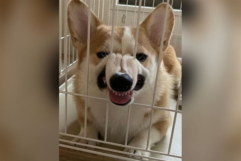 日本一隻柯基犬為吸引飼主注意,一天會多幾次把鼻子前端擠入柵欄間,形有趣成怪表情。圖取自推特