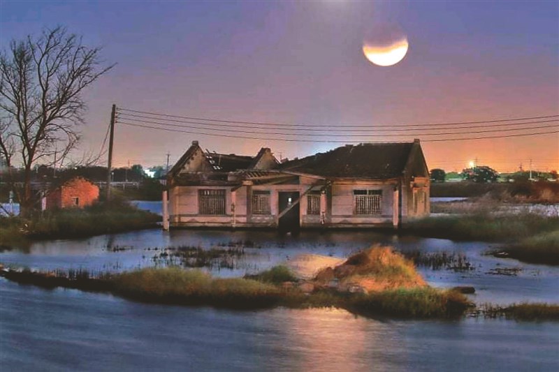 氣象局說,這是近82年來,食分最大的月偏食,最大掩蓋面積可達到98%,月亮完全升起時,也可以遮住95%;下一次是2039年,會發生掩蓋面積達94%的月偏食。明年將有兩次月全食現象,其中台灣可見為11月8日,預期又將成為天文界一大盛事;圖為嘉義東石水中屋拍攝的月偏食。圖/陳百豪提供