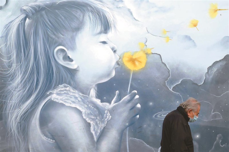 希臘新冠病毒死亡率達6個月來新高,約1/3人口沒打疫苗。圖為一名男子近日經過希臘首都雅典地鐵站的壁畫。圖/美聯社