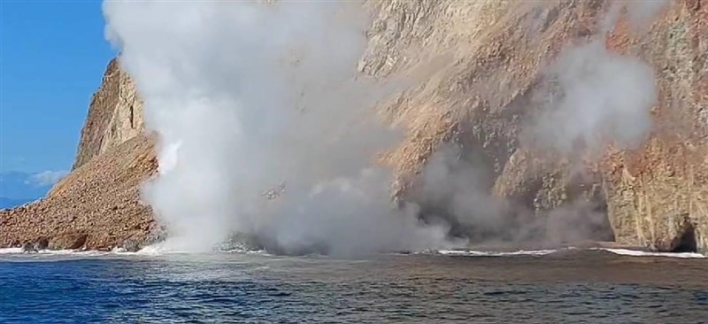 簡逢均表示,由於海底火山釋放能量相當大,使得今天見到非常濃烈的白煙,還可以聞到硫磺味道,最近如果噴發口沒有再被龜首的坍方石擋住,應該都還可以看到大大小小的龜島磺煙美景。