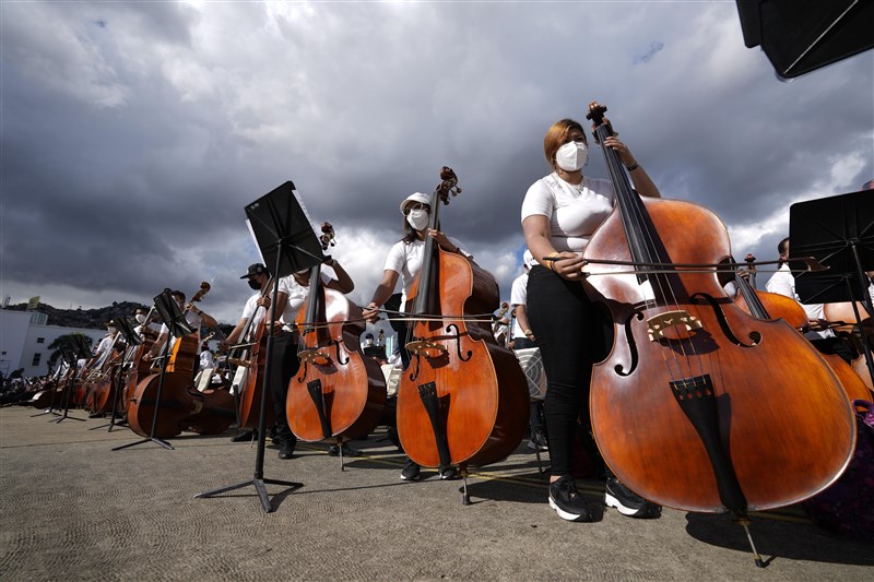 委內瑞拉國立青少年管弦樂團系統,以8573名音樂家合奏,改寫「世界上最大管弦樂團」的金氏世界紀錄。圖╱美聯社