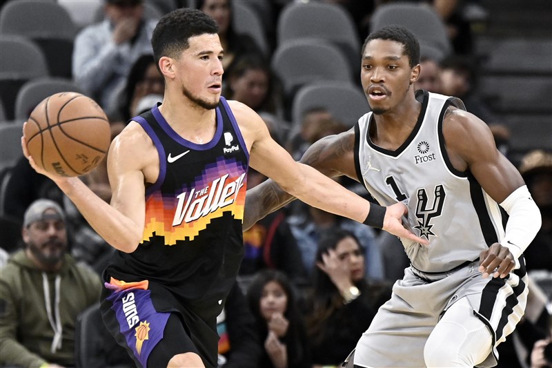 太陽上半場在艾頓(Deandre Ayton)14分帶領,對馬刺維持穩定領先,他全場攻下21分14籃板。第3節輪到射手布克(Devin Booker)與佩恩(Cameron Payne)撐起太陽得分點,佩恩命中率更是百分百單節獨拿11分,太陽始終領先在雙位數。