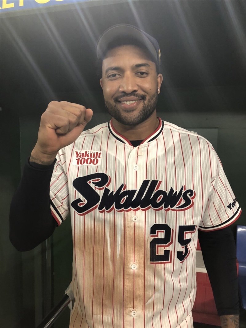 桑塔納敲出關鍵轟,幫助養樂多首次在日本一系列賽中取得領先。圖/取自養樂多推特