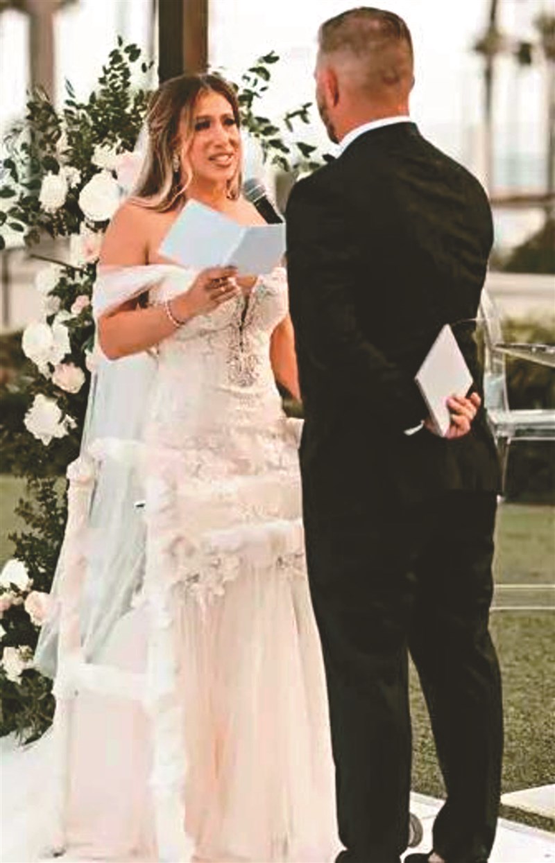 最後,她在誓言中表示:「在我的一生中,我一直想像在結婚當天跟丈夫站在一起。今天的這一刻,我想做一些我一直渴望的事情,在我們宣讀誓言的時候,跟你平視相對。」