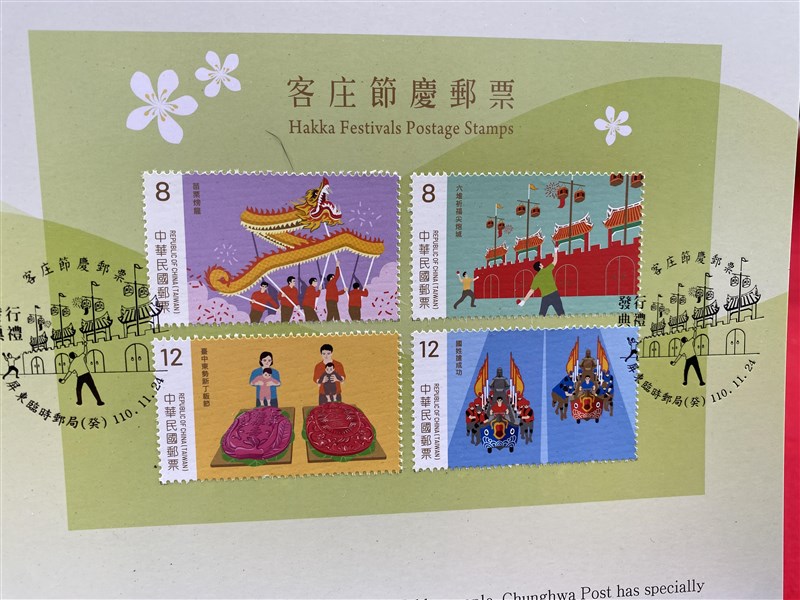 「客庄節慶郵票」1套4枚,也是國內首套以客家文化為題材的郵票。