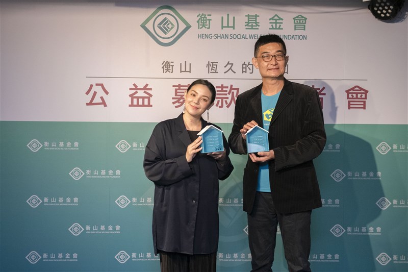 歐陽靖與衡山基金會副董事長侯永浩手拿衡山之家存錢筒亮相,呼籲民眾凡於基金會募款網頁捐款滿額,即可獲得極具意義的存錢筒。圖/衡山基金會