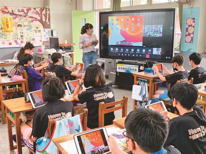 南投縣部分孩子因沒數位載具而到校,由校方提供平板協助學習。圖/南投縣政府提供
