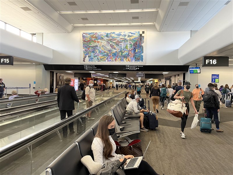 美東時間25日全美境內空中交通運量超過230萬人次,這是2020年4月13日以來最高紀錄。圖╱中央社