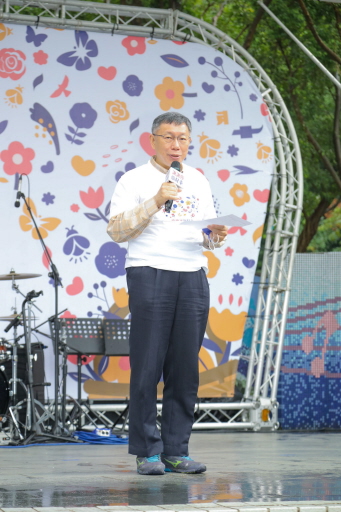 台北市長柯文哲27日上午參與公益嘉年華活動,對跨年防疫提出看法。圖/沈昱嘉