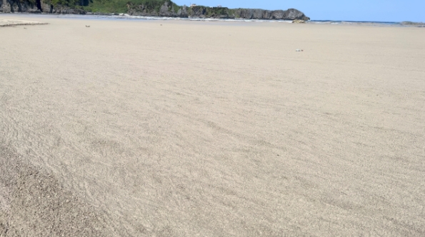 沖繩縣一處白色沙灘被浮石「染成」灰色。圖/取自網路