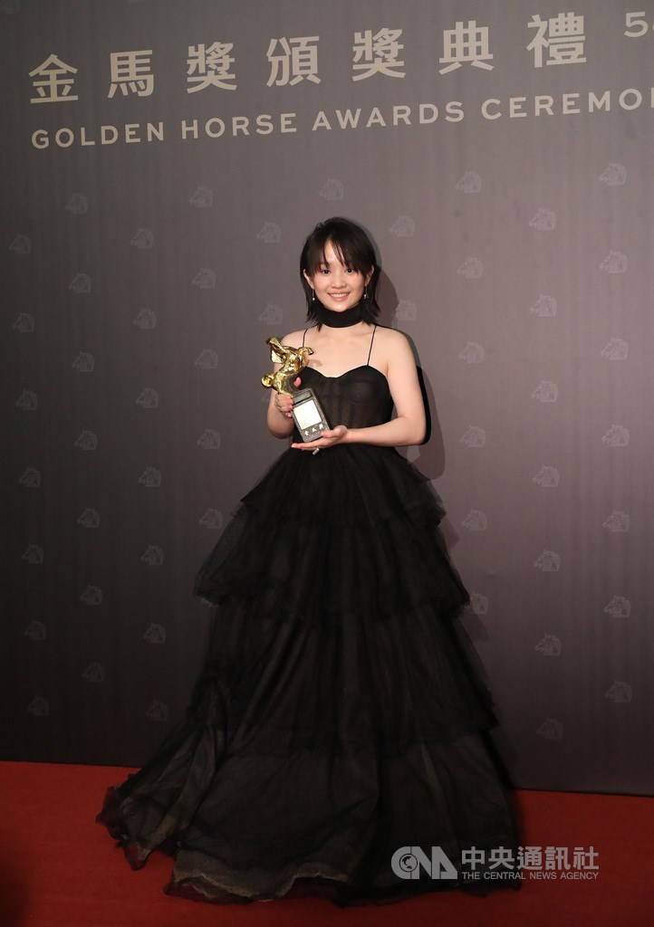 電影「美國女孩」女主角方郁婷一舉奪下最佳新演員,開心在後台留影。圖/中央社