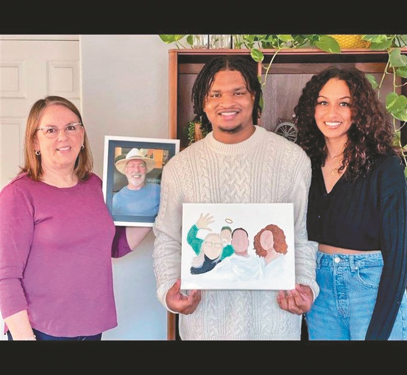儘管鄧契的丈夫去年感染新冠病毒過世,感恩節聚會少1人,今年與辛頓和他女友合照時,鄧契仍然帶著丈夫的照片合照。
