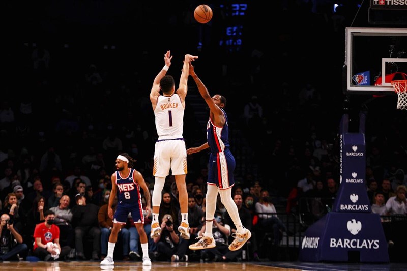 籃網開賽失誤不斷,光首節就出現8次失誤,加上外線手感冷7投僅1中,反倒布克在首節頻頻開火,單節進帳16分,幫太陽早早取得雙位數領先。