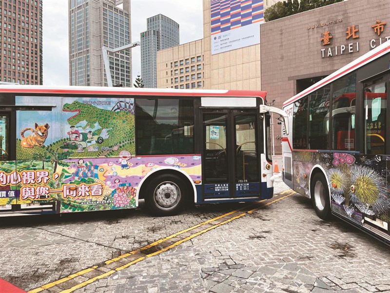 小胖威利病友關懷協會攜手台北市政府,將充滿天賦孩童的畫作化身成30輛藝術公車,即日起上路。圖/中央社