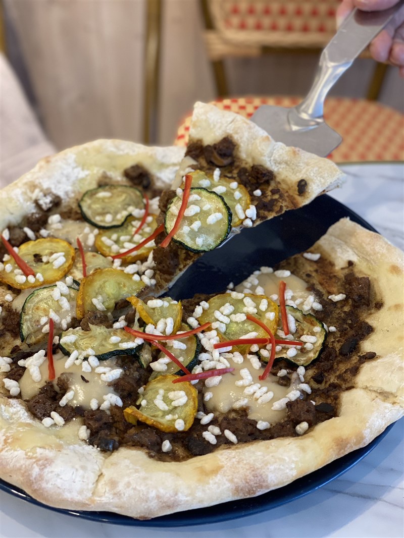 Gino Green 新創肉中西合璧 蹦出創新味蕾 楊旻芳 |2021.11.29 語音朗讀 1540觀看次 字級 大 中 小 Gino Green是大成集團旗下第一間蔬食品牌,使用新創肉中西合璧,蹦出創新味蕾。圖/記者楊旻芳 【記者楊旻芳台北報導】天母的蔬食餐廳Gino Green是大成食品旗下第一個蔬食品牌,餐廳內使用大成研發的國產植物肉「新創肉Neo Foods」為主題,設計出中式、西式等各式特色餐點,吸引許多民眾前往,一嘗國產植物肉的魅力。可客製化滿足各種飲食需求GinoGreen的餐點以蔬食為主,餐點含有蛋奶及五辛,均可以客製化成全素或是Vegan,以符合台灣飲食的多樣性需求。大成新創肉應用多元,可做成各式料理。圖/記者楊旻芳餐點中較具特色的是美式的彩虹COBB柯布沙拉,它的顏色如彩虹般絢麗多彩,純素版的COBB沙拉加入大成的新創肉取代雞肉、豆干取代蛋,再加入生菜、酪梨、紅椒、番茄、蘋果、小黃瓜等元素,不僅顏色繽紛、營養均衡又好吃。美式彩虹COBB柯布沙拉,使用大成的植物雞肉取代動物肉。圖/記者楊旻芳大成新事業開發處協理游宗堉表示,漢堡的麵包皮是大成旗下自製,他說,現代人追求較健康的飲食方式,很多女生喜歡吃美食,就又擔心熱量太高,所以希望麵包體不要太多,不要太有扎實感,因此大成特別研發這種蓬度一樣的漢堡麵包,口感相當鬆軟重量也較輕,吃起來負擔較低。水果泡菜漢堡(純素含五辛),中間夾的是大成的新創肉製成的植物牛排。圖/記者楊旻芳Gino Green最近也研發一款中西合璧的創新料理「台式滷肉披薩」,用新創肉做出台灣的滷肉口感,鋪在披薩上,再加入綠黃節瓜跟自製純素版的柏森起司(Boursin Cheese),最後再灑上炸過的在來米增添口感跟香氣。Gino Green新創口味台式滷肉披薩, 中西合璧蹦出新味蕾。圖/記者楊旻芳游宗堉說,柏森起司是原產於法國諾曼第區域的一款初質乳酪(cream cheese),吃起來有蒜香與香草料為主要特色,Gino Green用板豆腐與椰子油,重新詮釋了柏森起司,入口即化、香草氣息在口中縈繞。最特別的是使用新創肉製作的Neo纖酥雞塊,榮獲2021年十大雞塊人氣排行榜第6名,在眾多動物雞塊中唯一脫穎而出的純素雞塊。在Gino Green可品嘗到熱門雞塊的口感。Neo纖酥雞塊,榮獲2021年十大雞塊人氣排行榜第6名。圖/記者楊旻芳Gino Green也有提供茶、果汁、咖啡,有含奶的飲品皆可以加價20元升級成植物奶。游宗堉說,冬天也很適合來杯100%鮮果汁,有胡蘿蔔加上蘋果的綜合果汁,加入薑汁後可以平衡蔬果汁的生冷,喝起來有另一番風味。而拿鐵咖啡跟熱可可生級植物奶後,也十分滑順好喝。除了餐點,Gino Green也有提供大成旗下岩島成專業烘焙的麵包及巴黎十五法式烘焙的甜點,以蛋奶素為主,游宗堉表示,未來也將會積極開發純素產品,用植物奶取代牛奶、豆泥取代蛋、植物油取代奶油,來滿足台灣的日益漸增的純素飲食蔬食需求。原巴黎十五所販售的西點(蛋奶素)。圖/記者楊旻芳大成旗下岩島成專業烘焙。圖/記者楊旻芳國產植物肉 新創肉Neo Foods深耕肉品市場60多年的雞肉大廠大成食品,在2021年轉向推出可以解決地球嚴峻氣候問題的植物肉蛋白食品「新創植物肉-Neo foods」。圖/大成食品新創肉原料有濃縮分離大豆蛋白,豌豆、南瓜、菇類、甜菜、海藻類等植物蛋白,富含高蛋白、高纖、低脂、零膽固醇,還特別添加膳食纖維、B12、酵母菌等對人體有益的營養素,有一代肉與二代肉的特性,製作出接近肉的纖維與口感,可做出如肉般的絲狀,不論是葷素食者接受度都非常高。目前已經有研發出取代的肉類為牛肉、豬肉跟雞肉。圖/記者楊旻芳Gino Green的內用空間舒適,約可容納60人座位。圖/記者楊旻芳延伸閱讀>>>改變飲食力挽嚴峻氣候問題 60年雞肉大廠推出新創植物肉Gino Green 蔬食地圖(點我)02-6617-7775台北市士林區忠誠路二段55號一樓(大葉高島屋百貨) 前一篇文章 Omicron來勢洶洶 美學者籲參考台灣防疫 下一篇文章 新冠未平流感又起 多吃蔬果少吃肉可強化防疫 熱門新聞 01尋光2025.12.0402【生│活 │美│學】一花一詩 中華花藝的詩情畫意2025.11.3003南非Safari 動物舞台細細觀察2025.11.3004義國友善小鎮 人熊和平共存2025.11.3005【閃文集】 威尼斯印記2025.12.0206淡水、基隆、汐止21萬戶停水 爆民怨2025.12.0207印尼棉蘭水患 佛光人送物資救援2025.12.0208阿聯駐馬大使館國慶宴會 佛光山受邀出席2025.12.0209首例碳封存場址 苗栗居民反彈2025.11.3010大馬豪雨洪災 佛光山馳援送暖2025.12.01 訂閱電子報 台北市 天氣預報 台灣一週天氣預報 相關報導 財劃法覆議案 立法院否決涉詐千餘案 內政部封小紅書1年盧秀燕:第3次政黨輪替 對人民應是好事藍白擋下1.25兆軍購 暫緩列案默克高雄半導體園區落成 鎖定AI晶片秋鬥遊行 高喊反戰求生救台灣 作者其他文章素食需求增2成 台北君悅飯店茶苑供蔬食餐點無心插柳柳成蔭 樸城草食打造植物系美式蔬食店疫情後吃健康 台北凱撒大飯店Checkers轉型蔬食吃到飽餐廳