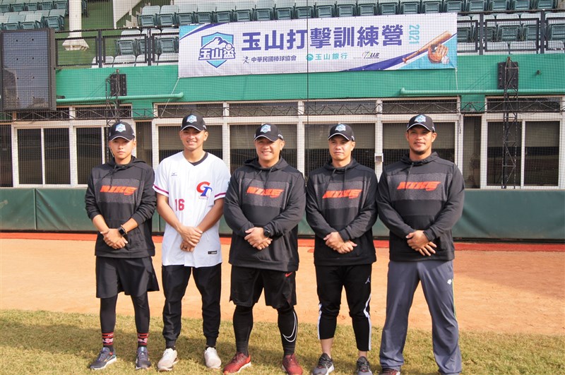 玉山打擊營講師群(左起)體能訓練員鵬力堯、劉致榮、張泰山、張正偉與陽耀勳。圖/中華棒協提供