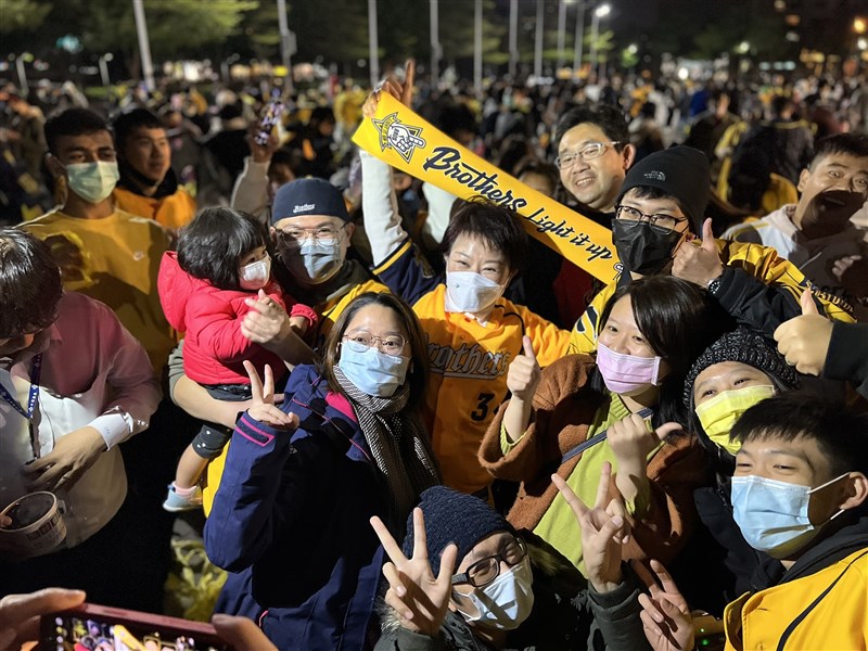 【記者曾博群台北報導】中華職棒台灣大賽中信兄弟帶著3勝0敗領先優勢,昨晚第四戰以5:0擊敗統一獅,抱回睽違11年的總冠軍,台中市政府在台灣大道市政大樓府前廣場舉辦賽事直播、首度在市府廣場前拋出黃色彩帶,場面熱血沸騰。「我們是總冠軍!」市長盧秀燕昨晚也至廣場與球迷一同呼喊,見證奪冠一刻,第一時間在市長臉書分享振奮人心的好消息,瞬間湧入上萬名粉絲按讚,明星球員大師兄林智勝也留言感謝溫暖的燕子市長。