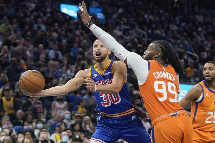 上次對決被太陽守到只得12分,柯瑞此戰一開始就飆進3分球,帶領勇士打出不錯開局,同樣首節打完領先太陽,不過勇士在次節後段攻勢熄火,勇士安德森(Juan Toscano-Anderson)拋投進球後,勇士在上半場所剩3分38秒1分未取,先前柯瑞拉出的雙位數分差也被太陽追近到只差3分。