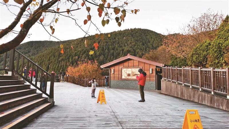 太平山莊觀景平台昨清晨一度降至攝氏零度,出現結霜美景。圖╱羅東林管處提供