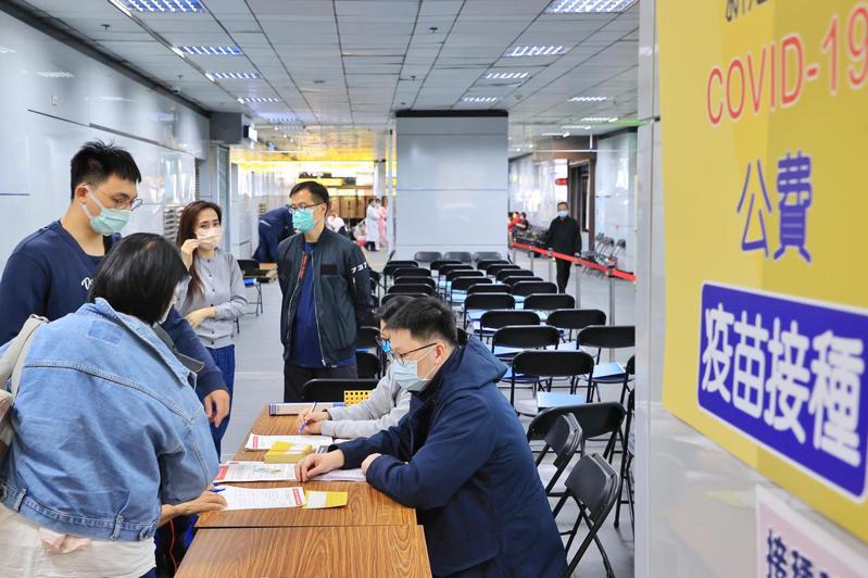 台北車站大廳西側回廊,設置疫苗接種站。圖/林伯東