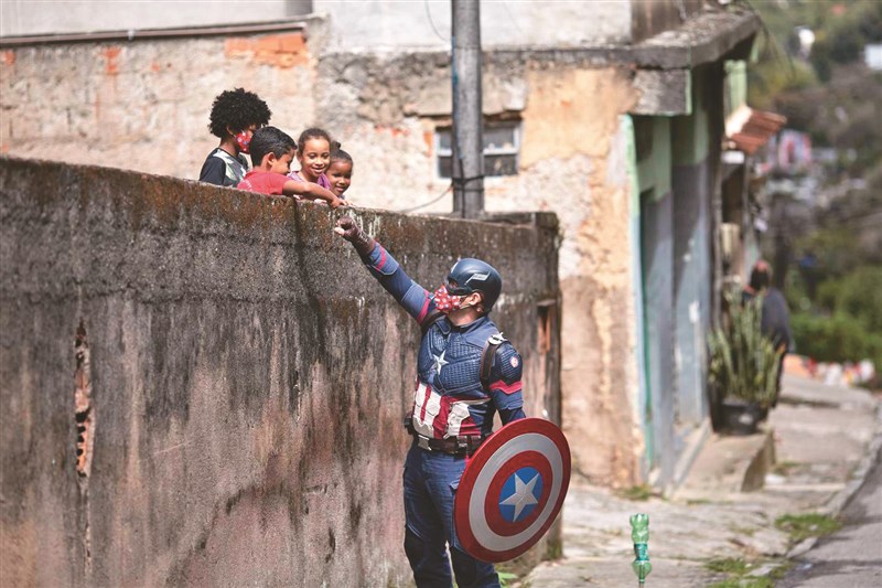 除了天災,新冠疫情也在全球肆虐,衝擊各國醫療體系、經濟,並使得千萬人須面對生離死別。這段期間,巴西里約街頭,有個身穿漫威英雄美國隊長服飾的憲兵平托(Everaldo Pinto),四處鼓舞孩子拿出勇氣保護自己;不管在地球的哪個角落,總是會有人努力傳達可貴的正能量。