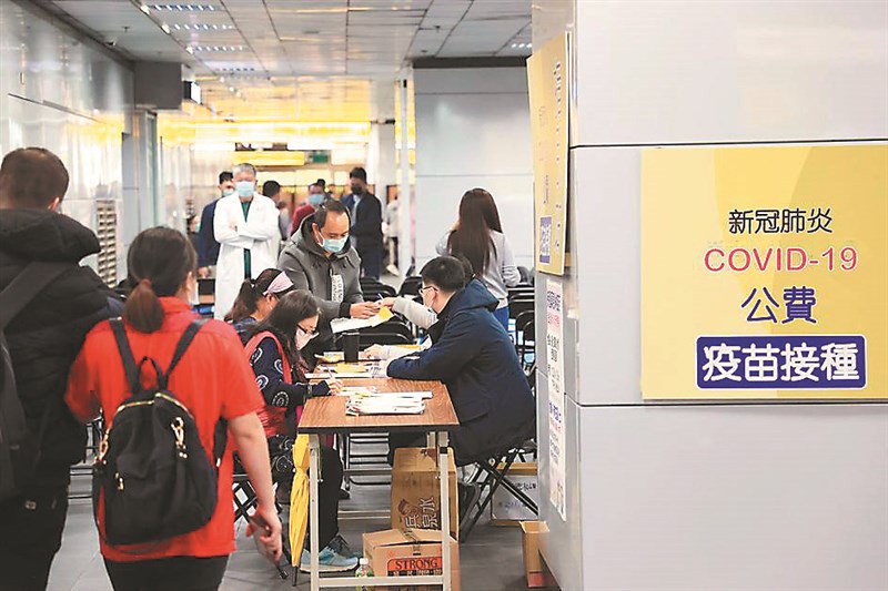 指揮中心昨天在台北車站大廳的西側迴廊,設置疫苗接種站,時間從下午一時到晚上八時。圖/林伯東