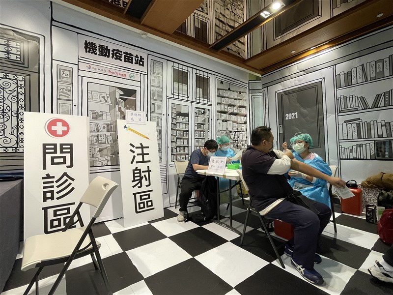新北市府盼提升疫苗接種涵蓋率,板橋大遠百設疫苗機動接種站。圖╱中央社