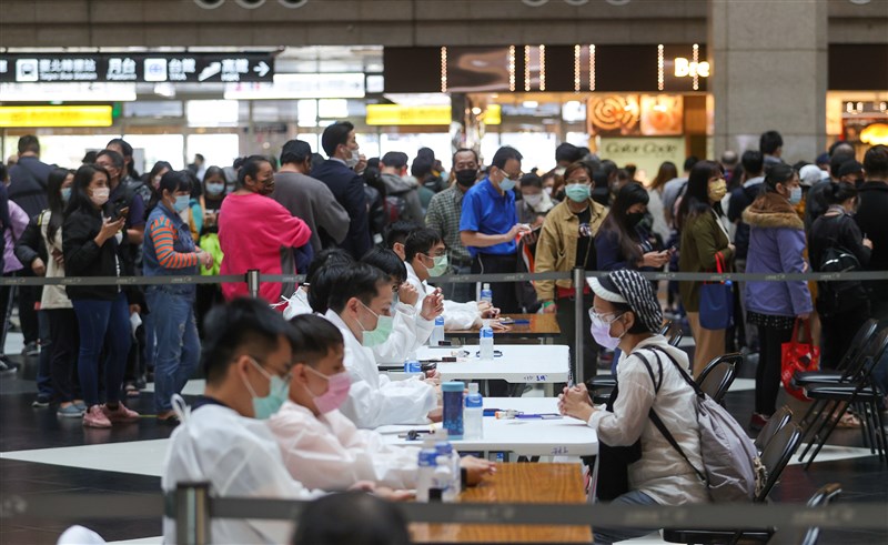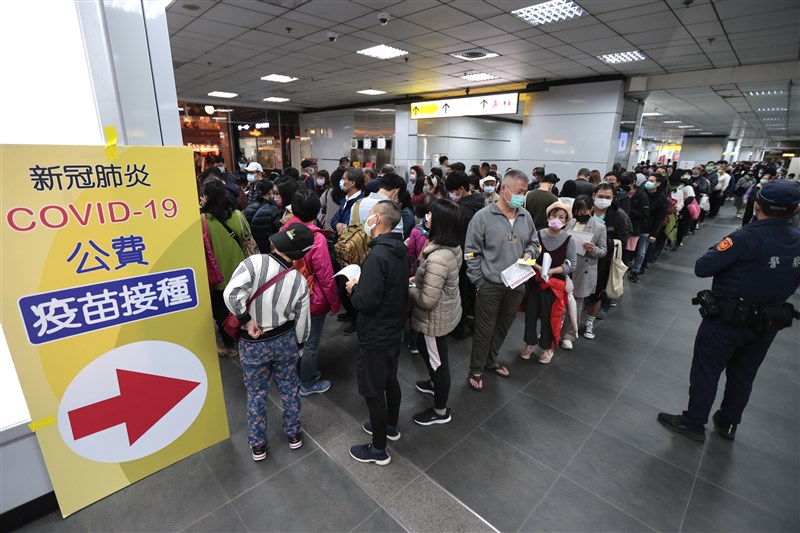 北車設置接種站並提供全聯百元禮券吸引民眾接種,情況踴躍因此延長至12日。指揮中心發言人莊人祥表示,目前累計接種8888劑。圖/中央社