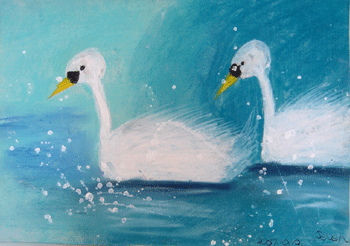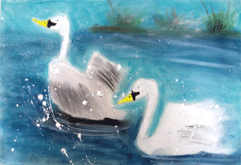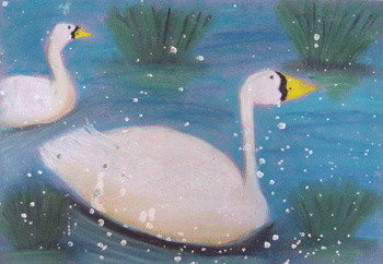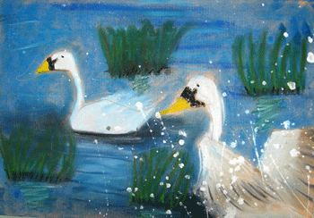 《聽我話畫》 天鵝 |2007.12.10 語音朗讀 527觀看次 字級 大 中 小 ◎運用媒材:粉彩 <聽我話話> 天鵝的姿態十分優雅,在陽光下舞動著雪白發亮的翅膀,真是美麗極了!關於天鵝有許多動人的故事,相信你們都十分熟悉了。天鵝的種類有數種,其中黃嘴天鵝又稱為大天鵝,身長一百五十五釐米,羽毛全身純白色,頸部修長而且彎曲,嘴吧上方兩側一直到鼻孔下方,都是黃色的,腳的部分則是黑色。黃嘴天鵝常棲居在湖泊和水塘邊,以植物為主食,嘴大且硬,掘食能力很強喔!看似溫柔的天鵝,能挖掘躲藏於泥灘下半公尺深的食物呢!<動手畫畫> 關於童話故事的天鵝有哪些?天鵝湖、醜小鴨變天鵝、天鵝王子等,都是很好聽的故事,如果你聽過這些故事,要和好朋友分享一下,如果你沒聽過,可以問問爸爸、媽媽或學校的老師,甚至到圖書館找看看!(1)淮安的天鵝張開了翅膀,拍起水面上的水花,一動一靜的天鵝讓湖面變得好熱鬧呀!新莊市光華國小 四年八班 吳淮安(2)淮丞的天鵝造型畫的很秀氣,遠處的草叢的點綴,十分自然,畫面看起來感覺悠閒自在。新莊市光華國小 六年十三班 吳淮丞(3)羿彣的天鵝姿態掌握的很好,尤其雪白色的羽毛細微處仍然能表現的很仔細,不容易喔! 新莊市光華國小 四年十六班 陳羿彣(4)琬渝的天鵝面對面,似乎在聊天說地一般,很有趣味性,只是天鵝的身體胖些會更合適。樹林市三多國小四年四班 張琬渝(5)尚紘的兩隻天鵝,表情、動作都十分的天真可愛!背景的湖面氣氛與動態感表現得很不錯。泰山鄉義學國小 四年四班 李尚紘聽我說畫專欄 文 施忞樺 圖 / 新莊 牙米兒童畫室 前一篇文章 《創作花園》體諒 下一篇文章 《自然科學好好玩》溫室效應 熱門新聞 01陸建匈塞鐵路 塞國段全線通車2025.10.0502全球佛光人 雲端共識和諧和平2025.10.0503埃及熱氣球映門農巨像2025.10.0504以愛育才 20教師獲頒星雲教育獎2025.10.0505菲律賓宿霧強震 佛光人馳援賑災2025.10.0606高市早苗 電視台主播邁向首相寶座2025.10.0507虎頭埤風景區 推動纜車BOT案2025.10.0508心保和尚闡述《八大人覺經》修行是生命最好的投資 2025.10.0509【修行在人間】佛心的慈視52025.10.0510【人間行者心】感恩茶會 一場殊勝的相遇2025.10.05 訂閱電子報 台北市 天氣預報 台灣一週天氣預報 相關報導 【快樂塗鴉簿】彩墨山水【TAIWAN寶島 覽勝】台南孔廟【快樂塗鴉簿】旖旎月色【世界好奇妙】高跟鞋的奇幻冒險【小藝術家】我們這一班【成語‧.故事】賣劍買牛