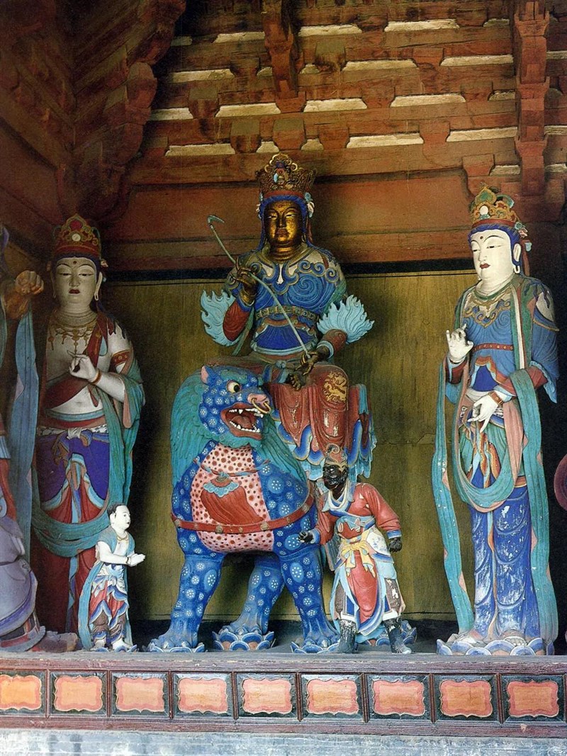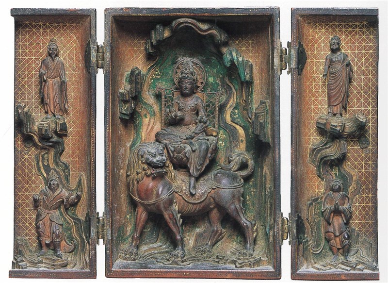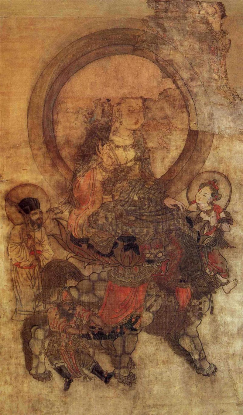 新樣文殊菩薩 變相的前世今生 |2021.12.10 語音朗讀 5946觀看次 字級 大 中 小 敦煌220窟新樣文殊壁畫。圖/取自微信 【本報綜合報導】「新樣文殊變」是敦煌五代、宋時期出現的另一類獨特造像,這是在莫高窟第220窟通道,一組後唐同光3年(925)的壁畫,以文殊、觀音變相為題材,榜題有「敬畫新樣大聖文殊師利菩薩一軀」,自此,敦煌研究院便以「新樣文殊」之名稱呼。畫面中的文殊菩薩騎乘青獅背上,與手牽韁繩禦獅的胡人和跪拜的善財童子相互配組。內容講述翟奉達為其先祖所造功德窟進行維修,又圖繪新像薦福,虔誠之情,款款可表。這一年的華北大地先是春夏大旱,繼之以陰雨不斷,釀成水災,同年6月後唐滅蜀,真是多事之秋。文殊菩薩採正面端坐騎獅相,頭光與身光具足,頂戴覆鉢形化佛寶冠,頭梳雙棱分髻。菩薩的臉龐圓潤,通身瓔珞,右手前舉長柄如意。青獅做止步回首狀,與身側的御獅人顧盼相視。禦獅人頭戴小團花胡帽,細眉長目,蓄著短而棬曲的絡腮鬍;身著土紅色圓領窄袖袍,緊腰帶(上有裝飾物),內著白褲,下穿皮靴,並非平民裝扮。加上立於青獅前側的善財童子,上身微躬並合掌作禮,三者成一整體,頗具備舞台效果。在此「新樣文殊」胡人裝扮男子的頭側有「普勸受持供養大聖感得于闐....國王....時」的榜題,故知其身分為于闐王;而于闐王焉何出現在此,代替崑崙奴而成為新禦獅者,是個很有趣的問題。西夏黑水城出土新樣文殊菩薩像。圖╱取自微信唐開元13年(725),玄宗與皇后率諸臣僚在山東成武縣的一座高僧舍利塔地宮門扉上,供養了新樣文殊,這是目前所知最早的先例。山西五台山南禪寺的大殿重建於唐建中3年(782),因其位置偏僻而躲過唐武宗的會昌法難,其殿堂有同時期的文殊塑像,正是有于闐王牽獅,四川地區也有中晚唐至宋代的新樣文殊造像。五台山佛光寺彩塑。圖╱取自微信從圖像的普及度來說,晚唐五代大概是新樣文殊的興盛期,而8世紀初應可視為于闐王為文殊菩薩禦獅圖像的起點。同光二年(925),沙州曹氏歸義軍與中原有了首次的交往,翌年,新樣文殊就完整地出現於莫高窟壁畫中。在敦煌一帶,新樣文殊變的出現或許與莫高窟第61窟文殊堂有關,在歸義軍曹元忠時期所建立的敦煌「五台山主題洞窟」,正是以繪塑一體的新樣文殊變為中心的,當時曹氏家族與于闐王的關係很密切。相同的新樣圖像在英、法、俄和北京圖書館等的藏經洞出土版畫中,也多能見到,可見其流行之普遍。于闐國王李聖天和曹皇后供養像,莫高窟第98窟。圖╱取自網路新、舊樣文殊之間最大的不同,主要在於禦獅者從崑崙奴變換成于闐王。特別選擇由于闐王來扮演牽獅的御獸者,或也跟80卷《華嚴經》的新譯,以及華嚴宗的開展有著一定程度的關聯性,畢竟《華嚴經》梵本是從于闐國請來的,于闐王親自為文殊菩薩禦獅,也是一份殊勝的榮耀。〈文殊群像〉,唐建中3年(782)泥塑敷彩╱山西五台縣南禪寺大佛殿。圖╱取自網路另一方面,善財童子出現在文殊群像之中,反映的是《華嚴經•入法界品》日益受到重視的現象。從中我們看到了一個福慧資糧充足的童子,如何找到他自己的求道之路,也看到文殊作為一個啟發菩提覺性的善知識,是如何用心引導善財童子完成他的一生成佛之旅的。日本醍醐寺藏鎌倉時代〈文殊渡海圖〉。圖╱取自微信此處,需再提到罽賓國(今喀什米爾)沙門佛陀波利,會見老人的因緣,這是記載於《廣清涼傳》和《佛頂尊勝陀羅尼經序》的故事。唐高宗儀鳳元年(676),佛陀波利來到中國朝禮五台山,向山頂禮,伏乞文殊尊儀。舉首忽見一位說婆羅門語的老人,指引他唯有回天竺取得《佛頂尊勝陀羅尼經》東來,始能得見文殊,為滅眾生一切惡業。待佛陀波利回國取經再中土時,已經是永淳2年(683)。高宗皇帝感念其遭遇之奇特,遂協助翻譯,然而卻不讓流通。再啟皇上,得向西明寺僧順貞求助,以圓滿其流通之願。之後,佛陀波利帶著《佛頂尊勝陀羅尼經》梵本向五台山去,不知其終。這個故事的真偽無從確知,卻提供給後人無限的想像空間,成了日後新樣文殊三尊像(文殊、善財、于闐王)再發展成五尊像(三尊加上老人和佛陀波利)的養分。〈五台山文殊佛龕〉,13世紀木刻彩繪高14.2cm,日本和歌山遍知院藏。圖╱取自網路在新樣文殊興盛的時代,舊樣還是流行著,也就是說在文殊的侍從當中,南海崑崙奴和于闐國王分別領有舞台,並行流傳,于闐王並沒有完全取代崑崙奴。2、300年之後的山西五台山佛光寺文殊殿裡邊,塑作了一鋪「新樣文殊七尊像」,這等於是中國新樣文殊造像發展的製高點了。宋代佛教的諸種群像之中,文殊菩薩、最勝老人、佛陀波利、于闐王、善財童子五尊奇妙的組合,成為東傳日本的「文殊五尊群像」。供奉於日本奈良安倍文殊院的文殊菩薩五尊像,是由鎌倉時代著名佛像雕刻大師快慶製作,是日本國寶。圖╱取自文殊院官網收藏在日本奈良的安倍文殊院的文殊菩薩,是由鎌倉時代著名佛像雕刻大師快慶製作於建仁3年(1203),完成於承久2年(1220),原供於東大寺,後因戰火才移置安倍文殊院供奉的,安倍文殊菩薩被稱為渡海文殊菩薩,表示為賜給眾生智慧而踏上旅程的姿態。其藝術技法與價值都很高超,造像的細節處理讓見者心生讚歎;難得見到的是:善財童子竟然合掌背對文殊菩薩,似乎正要謝師啟程往參德云比丘去,特別有意思。事實上,圖像與