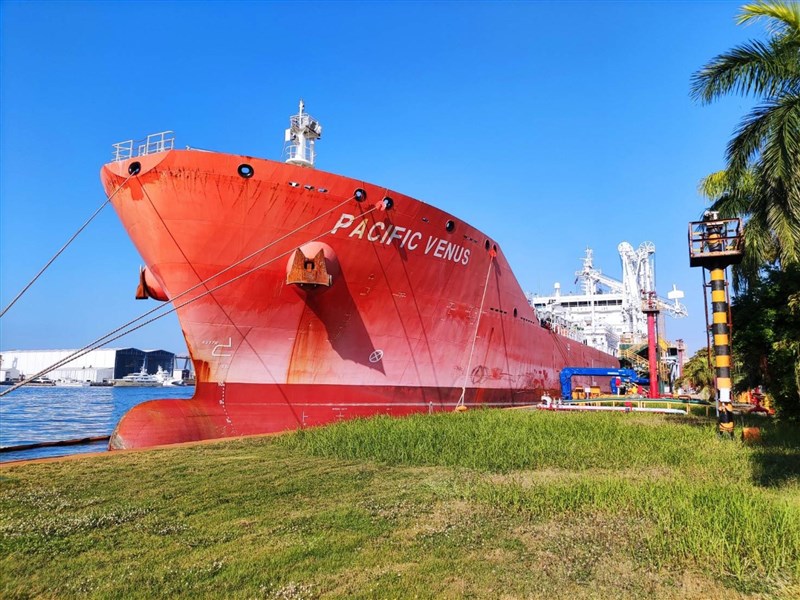 全球首艘碳中和乙烯船抵台。圖╱中央社